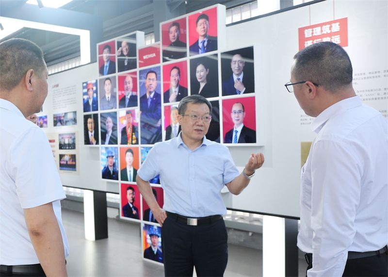 6月1日下午,河南省市場監督管理局黨組書記、局長景勁松一行蒞臨衛華智能產業園調研。河南省市場監督管理局辦公室主任梁中輝、登記注冊處處長白付偉,新鄉市副市長祁文華,新鄉市市場監管局局長董文鳴、副局長高瑞峰,長垣市市委書記范文卿,市委常委、副市長浮俊紅,長垣市市場監管局局長賈江波等陪同調研,衛華集團董事長韓紅安,集團黨委副書記、常務副總裁苗紅接待景勁松一行。