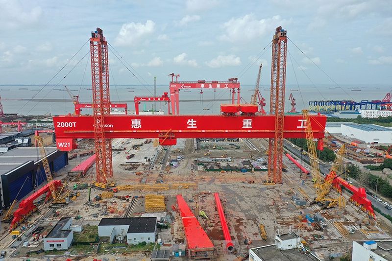 2000t×200m造船門式起重機服務(wù)于惠生海工南通基地的船塢擴建工程,南通基地是惠生海工主要的浮式設(shè)備生產(chǎn)建造基地。船塢擴建工作是整個南通基地改造項目的重中之重,對惠生海工增強自身實力,升級服務(wù)能力具有戰(zhàn)略意義。未來改造完成后,惠生海工將能夠為全球客戶大型、超大型浮式方案的EPCIC總包服務(wù)提供更多選擇。