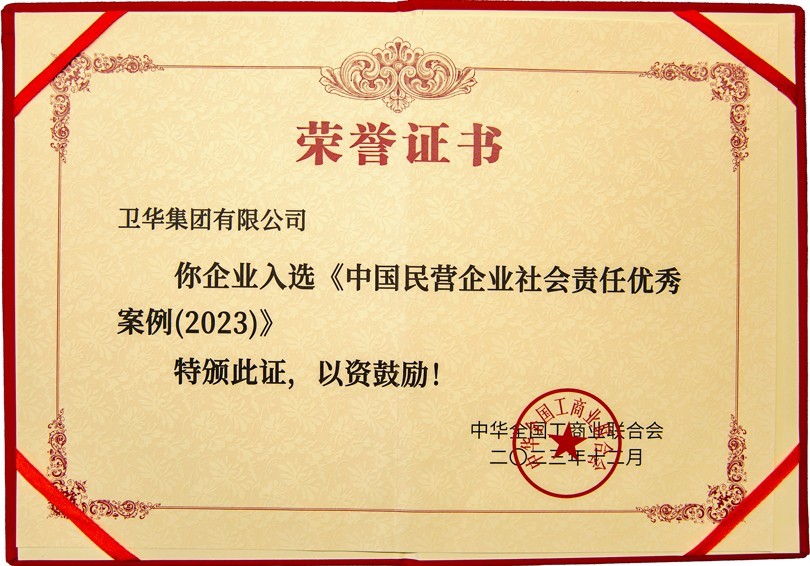 近日,全國工商聯發布《中國民營企業社會責任報告(2023)》,衛華集團入選《中國民營企業社會責任**案例(2023)》榜單,全國共50家民營企業入選。