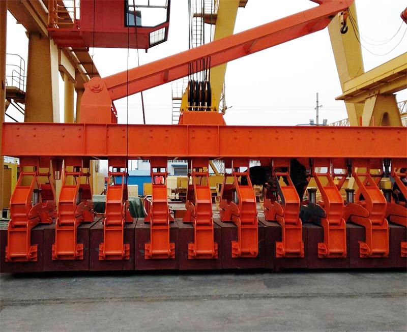 極炭塊堆垛起重機是炭素廠炭塊倉庫的專用轉運設備,該設備主要有橋架、大車運行機構、起升機構、導向裝置、夾鉗裝置、控制系統、電動葫蘆等部分組成。其用于陽極炭塊庫中抓運生、熟炭塊,及其它零星吊運。其自帶的夾具每次抓取19或21塊縱向排列的陽極炭塊進行往返堆垛或裝車,也可實現廢塊的取出及合格塊的插入,可堆積9層。