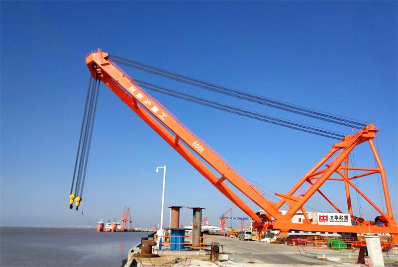 該起重機(jī)用于京滬重工碼頭,主要承擔(dān)碼頭吊運(yùn)22000m3LPG液罐。兩吊鉤抬吊起重量可達(dá)660噸,變幅幅度21.5-54m。