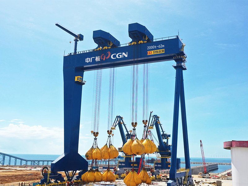 憑借行業(yè)領(lǐng)軍的研發(fā)實力及創(chuàng)新能力,針對項目復(fù)雜的工況要求,衛(wèi)華現(xiàn)已研制出2000t軌道式龍門起重機,其起升總高度達90m,跨度達62m,采用雙小車設(shè)計,并在生產(chǎn)制造環(huán)節(jié)采用AWS標(biāo)準(zhǔn),可保障在極端情況下將吊裝重物安全降至地面,實現(xiàn)各機構(gòu)零速制動,使沖擊造成的載荷降為零,保證運行機構(gòu)、起升機構(gòu)的平穩(wěn)性,滿足設(shè)備安裝精度的要求。